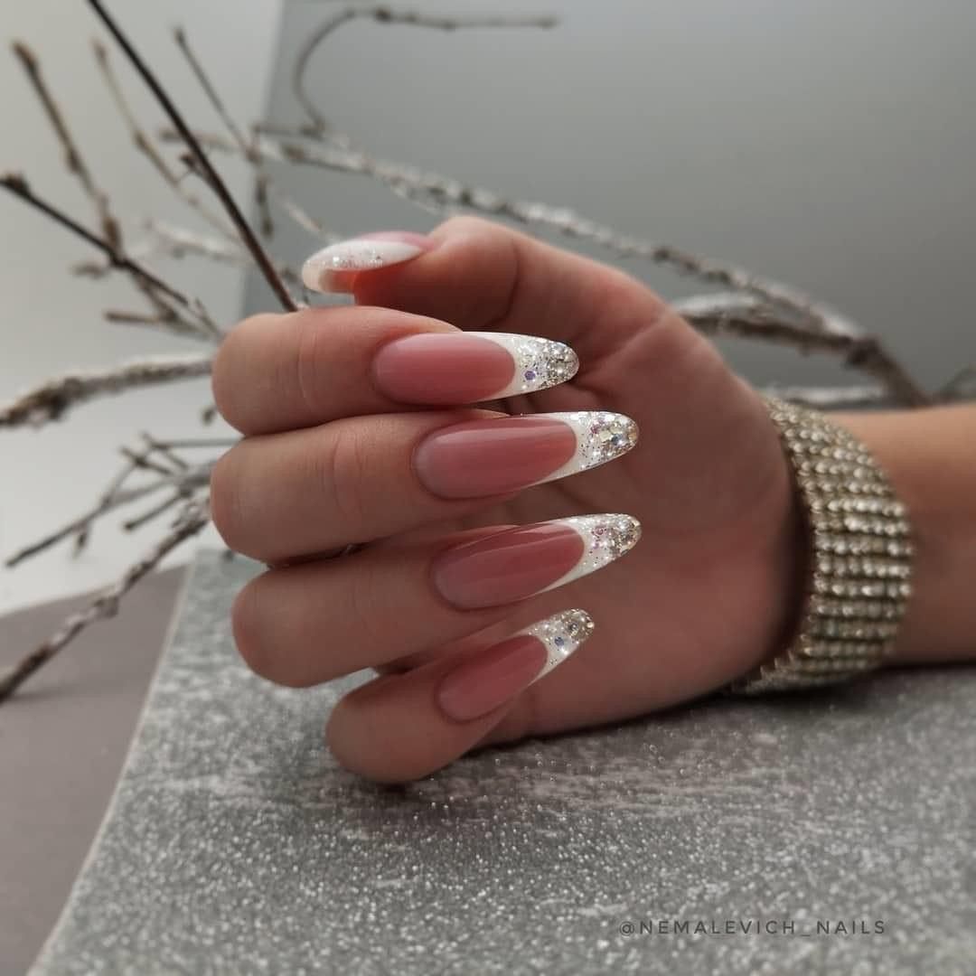 Chrome never really disappeared, it evolved. The current version is softer: a milky or sheer nude base with a fine pearly layer on top. Instead of a mirror effect, you get a glow that catches the light in a more subtle way.
