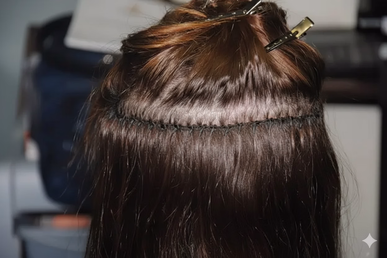 This method is often described as a sew-in. The stylist creates a small braid and stitches the extension weft onto it. Installation usually takes around two hours, lasts six to eight weeks, and avoids heat, glue, or metal rings, although it can add tension to very fine hair.
