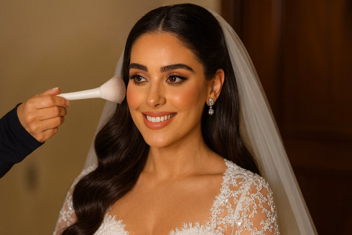 Middle Eastern weddings often last for many hours, with multiple photo moments throughout the day. Makeup is built in thin, durable layers so it stays polished from the ceremony to the final celebration without looking heavy.