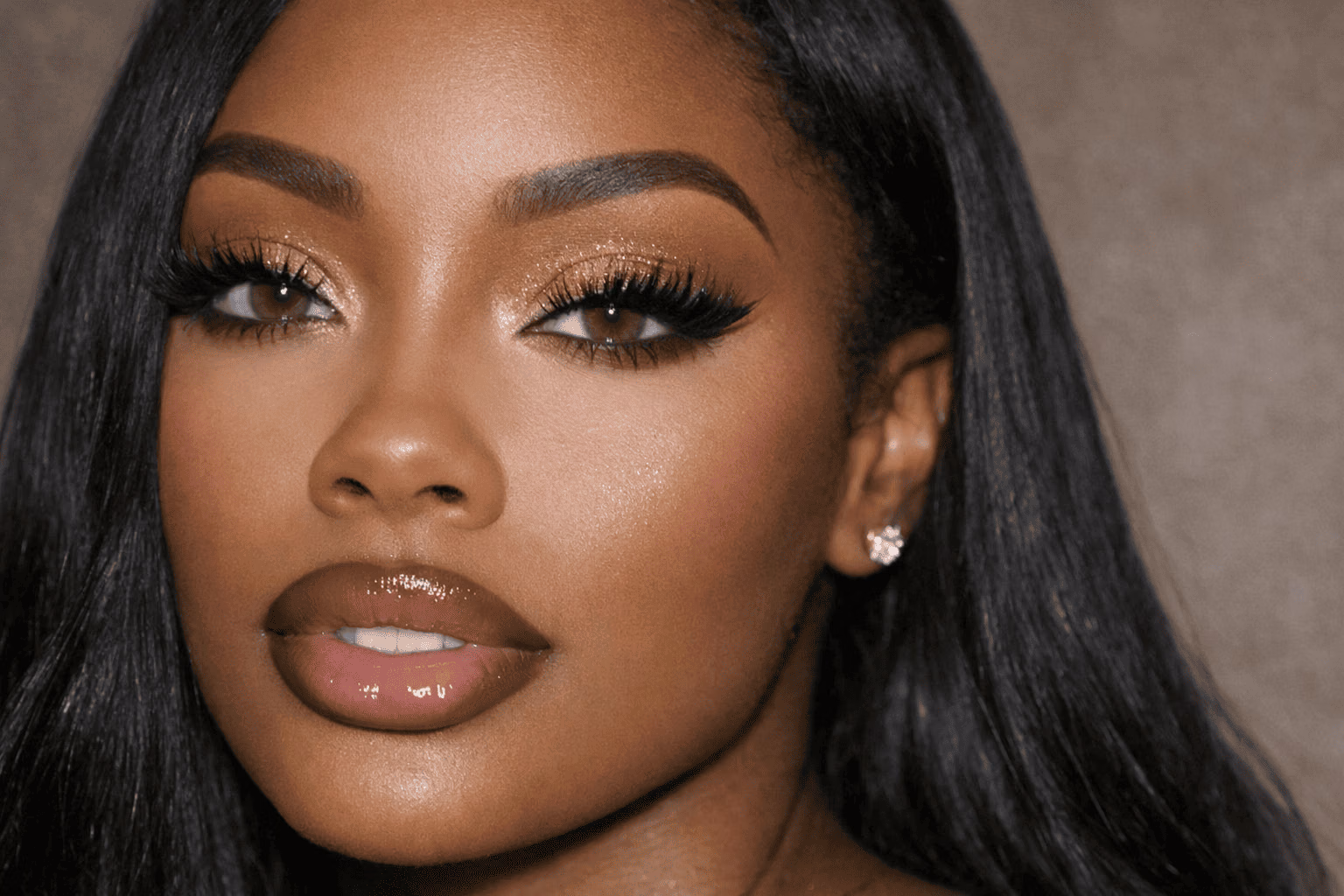 Full glam with sculpted skin and high-impact lips