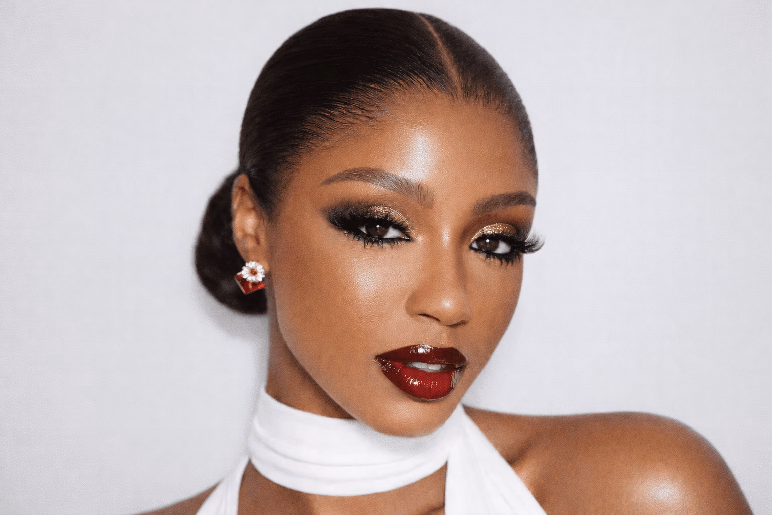 Bold eyes, sharp liner, and statement lashes